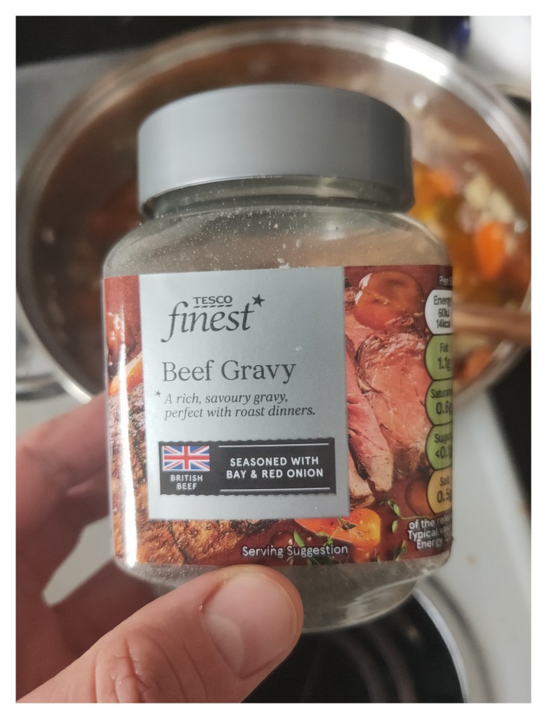 Keď už je to hotové, pridám omáčku a k tomu zvyknem pridať tajnú prísadu, gravy granule (nepoznám slovenský ekvivalent žiaľ).