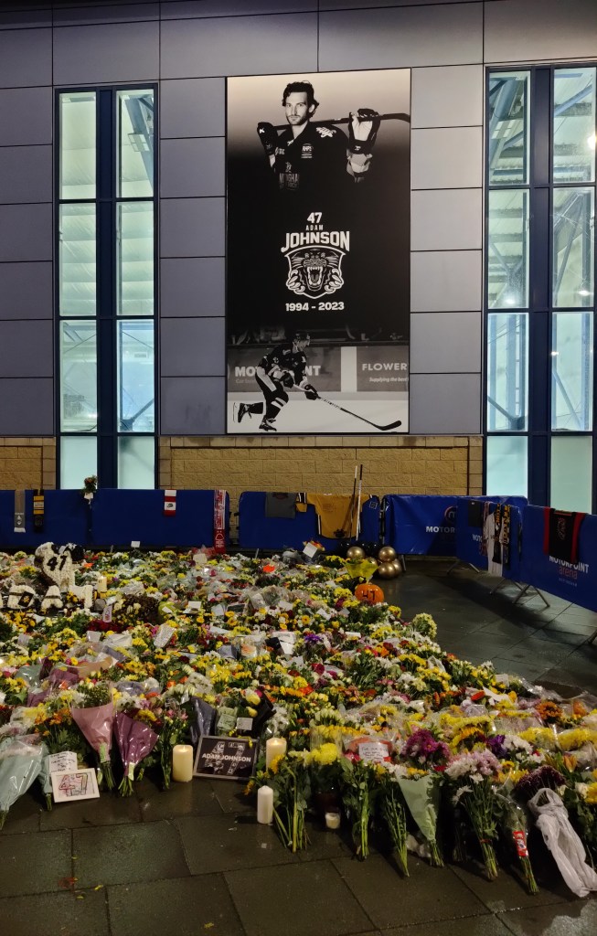 Bol som včera, 5. Novembra na spomienkovej slávnosti v Nottinghamskej Motorpoint aréne pri príležitosti tragického úmrtia Adama Johnsona, hokejistu miestnych panterov.