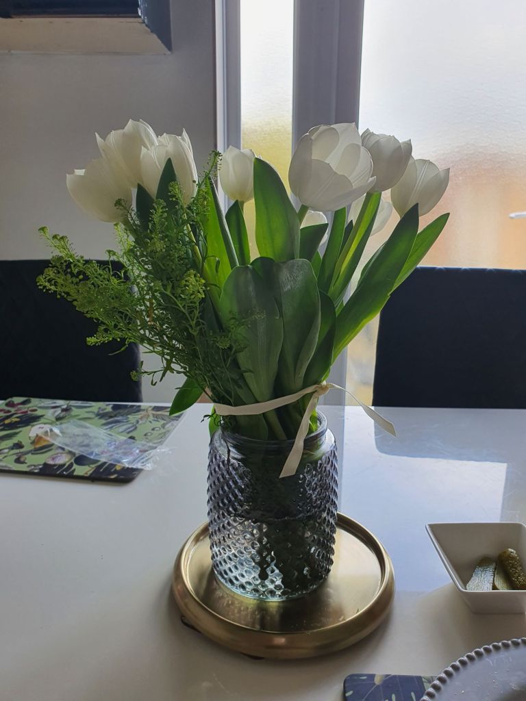 And today I also treated myself to flowers because as I was shopping for meat saw them in clearance, including the vase. Why not 🌷😎